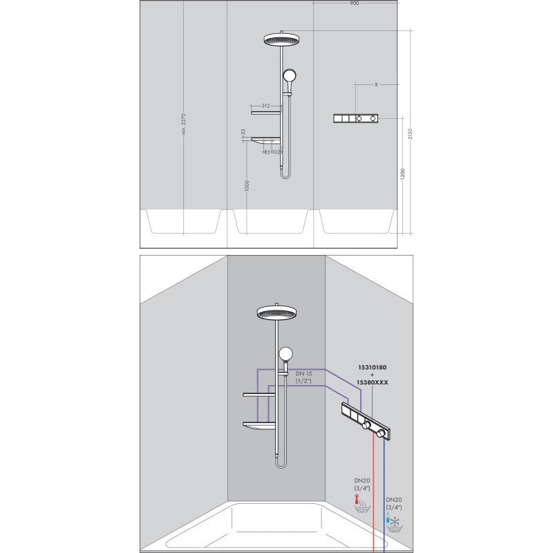 - Потребитель: верхний душ, ручной душ