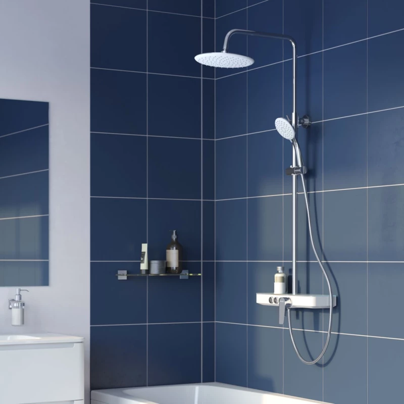 Душевая система Iddis Shelfy SHESB3Fi06 с верхним душем и полкой. Инновационные технологии литья и обработки латуни, увеличенная толщина стенок корпуса смесителя обеспечивают стойкость к перепадам температур и давления. Соответствует требованиям нормативных документов.