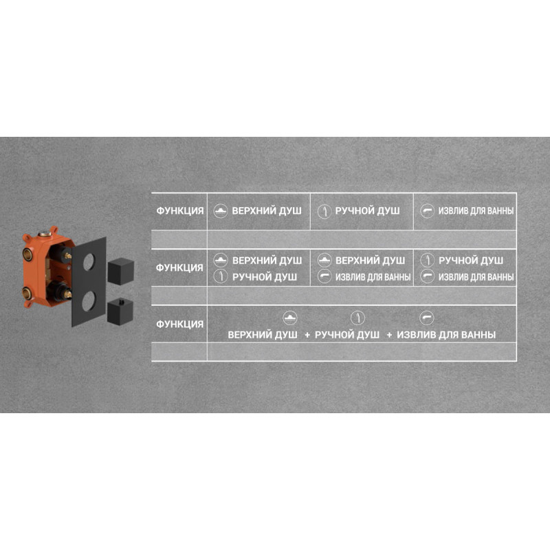 - Форма верхнего душа: квадратная.