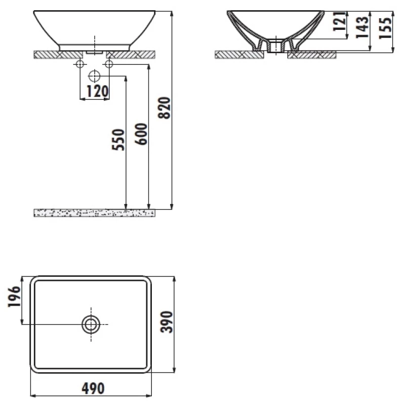 - Без готовых отверстий под смеситель