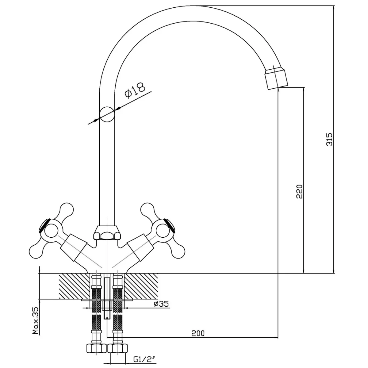 Смеситель для кухни Orange Classic R M73-002cr