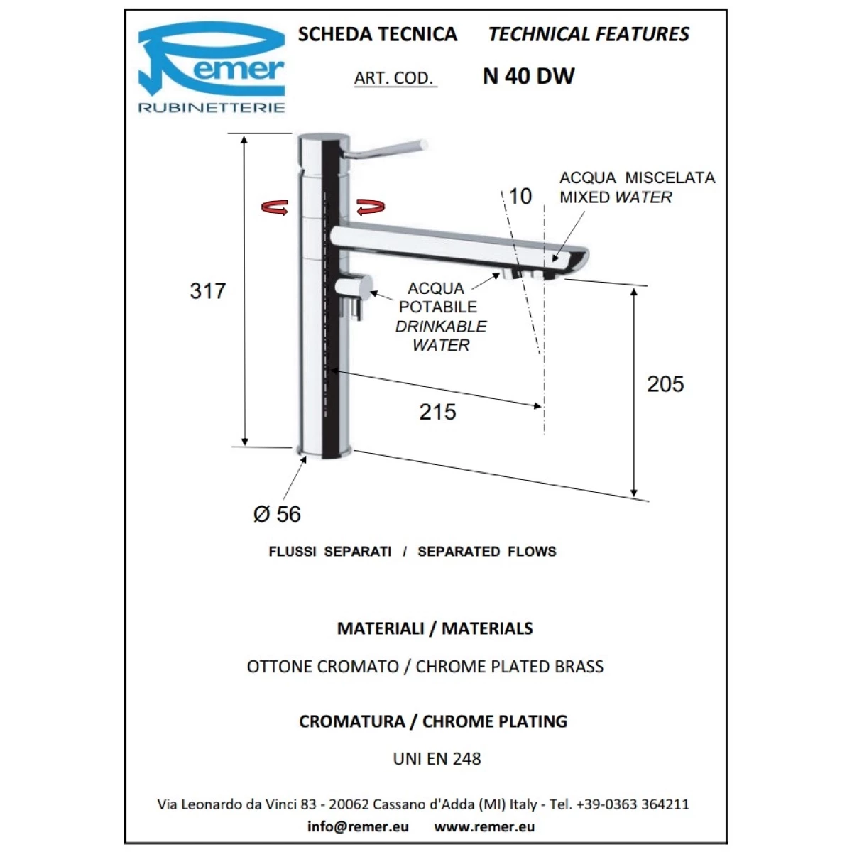 Смеситель для кухни с подключением к фильтру Remer X Style N792DWNO смеситель для кухни с подключением к фильтру remer x style n792dwno смеситель для кухни с подключением к фильтру remer x style n792dwno